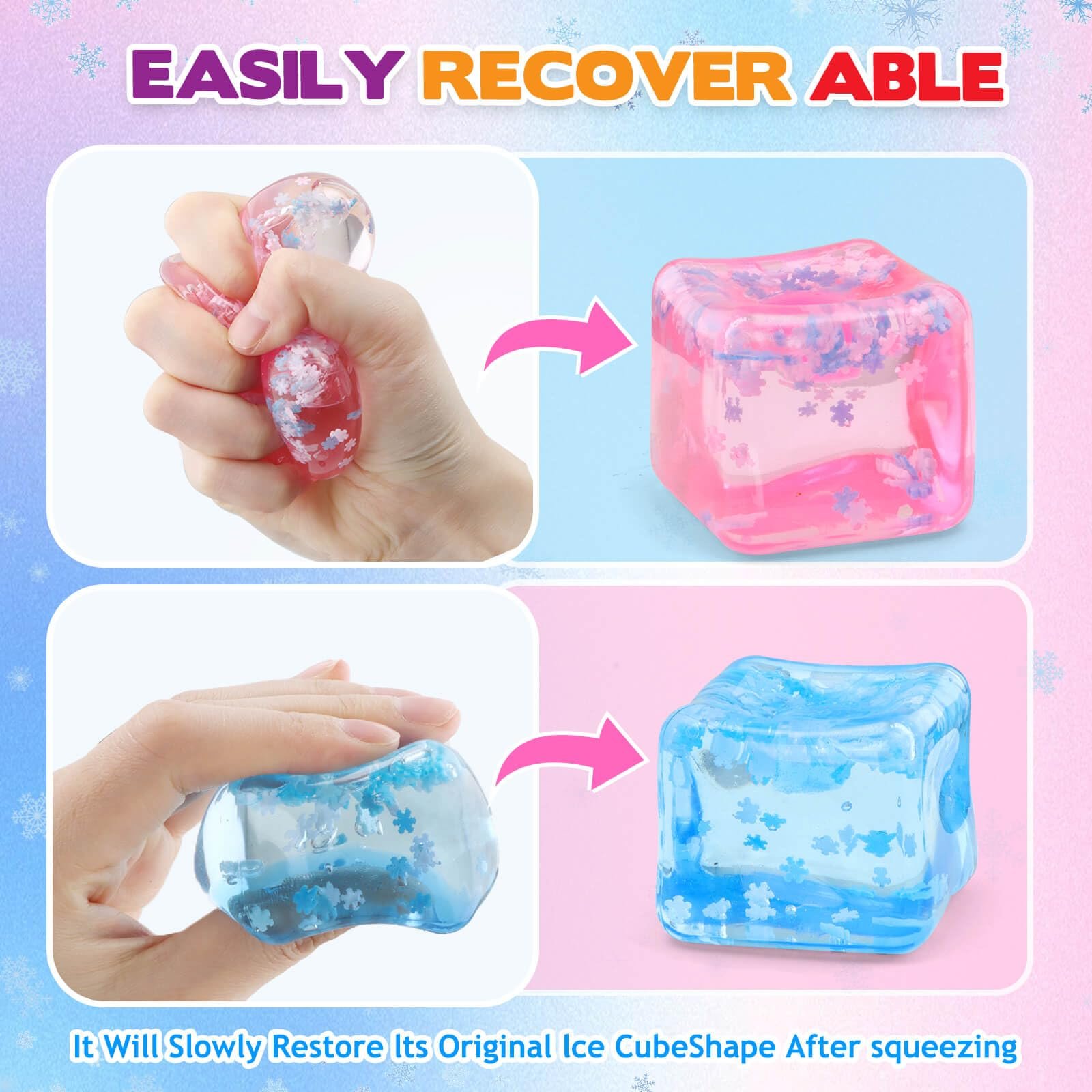 • Joyful Mood Lifter: Brighten your day with our stress-relief cubes in calming blue, cheerful pink, soothing purple, and vibrant orange. Featuring a subtle scent and floating snowflakes, they melt stress and spread happiness anywhere