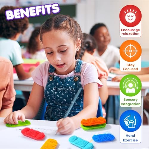 Durable and Portable: The soft, durable silicone material, used for the soft long bristle and base, ensures this textured fidgets can withstand frequent rubbing and pulling. The edges of this tactile sensory toy are smooth and rounded, ensuring children can hold it in their hands and play with it safely without any concerns. Its compact, mini size allows both students and adults to easily carry it in a backpack or pocket, or hold it in one hand for squeezing