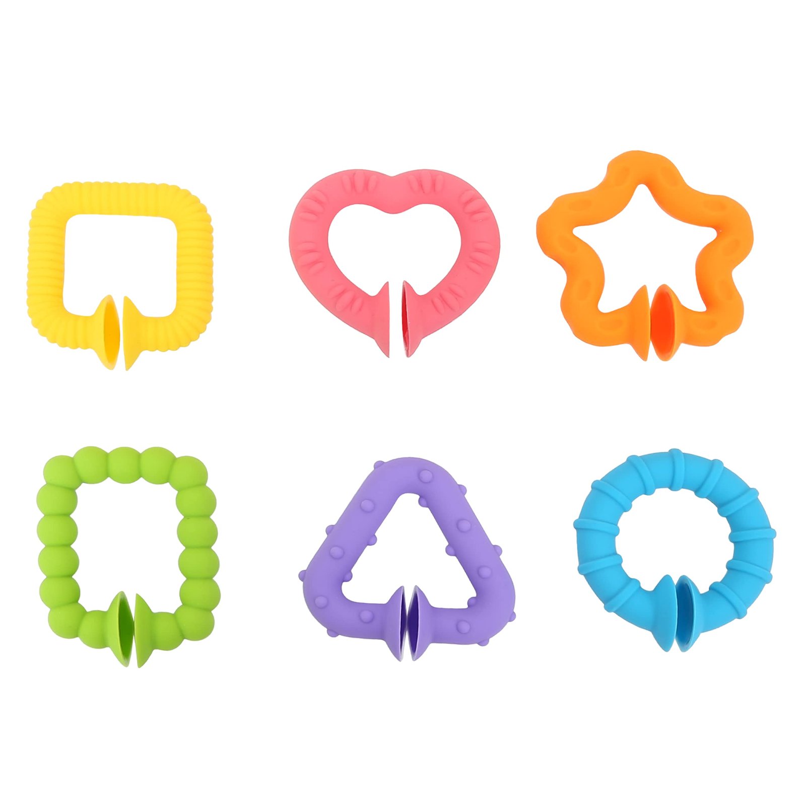 BUMPY, WIGGLY SHAPES: Stick, pop & loop these adorable silicone suction cup toys for babies, toddlers & kids to almost any surface! Connect them to each other to make a colorful chain & get tactile input from the bumpy textures at the same time!