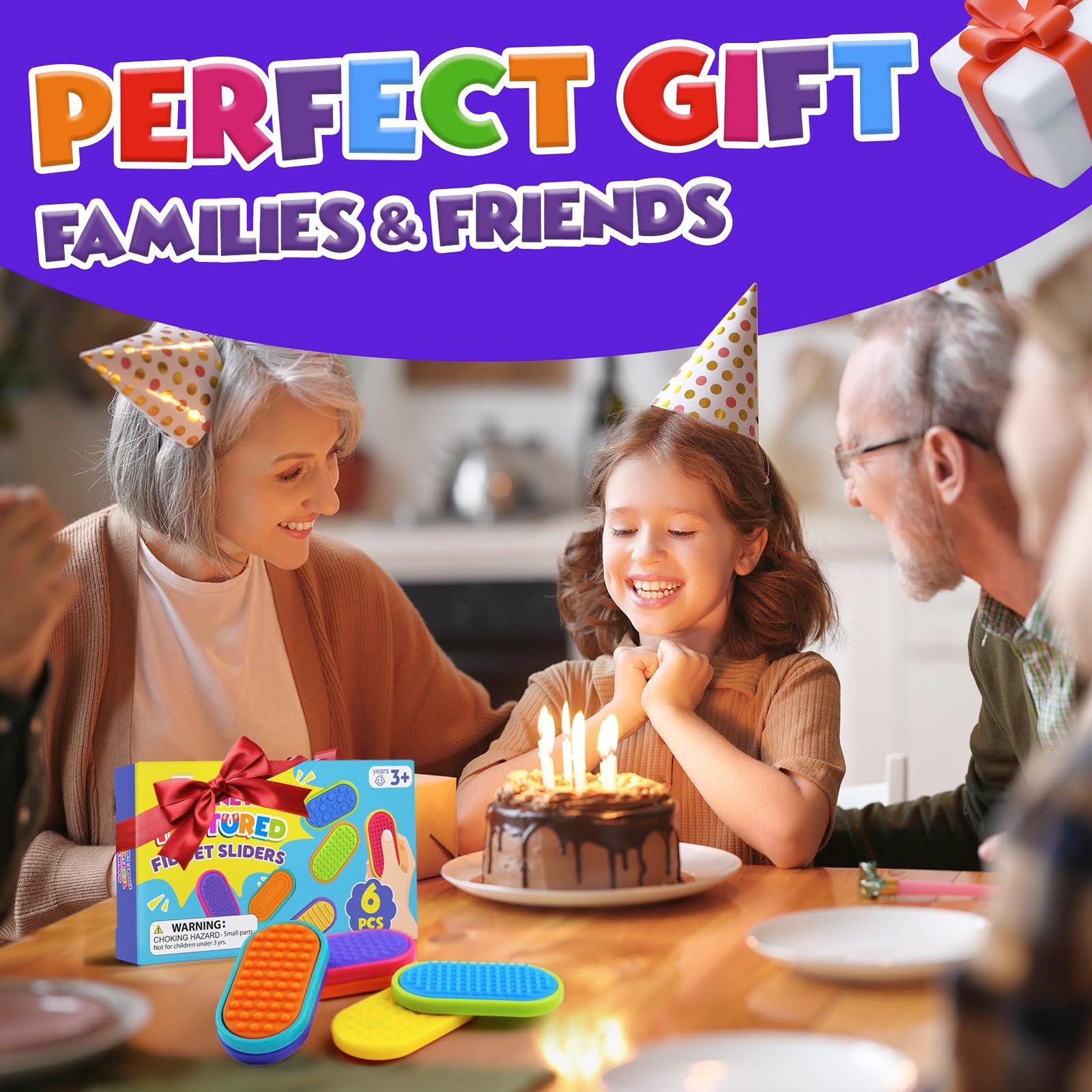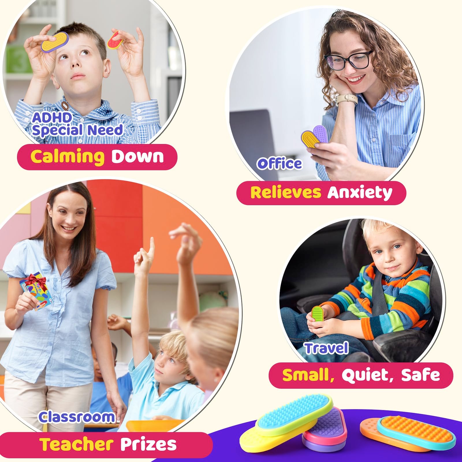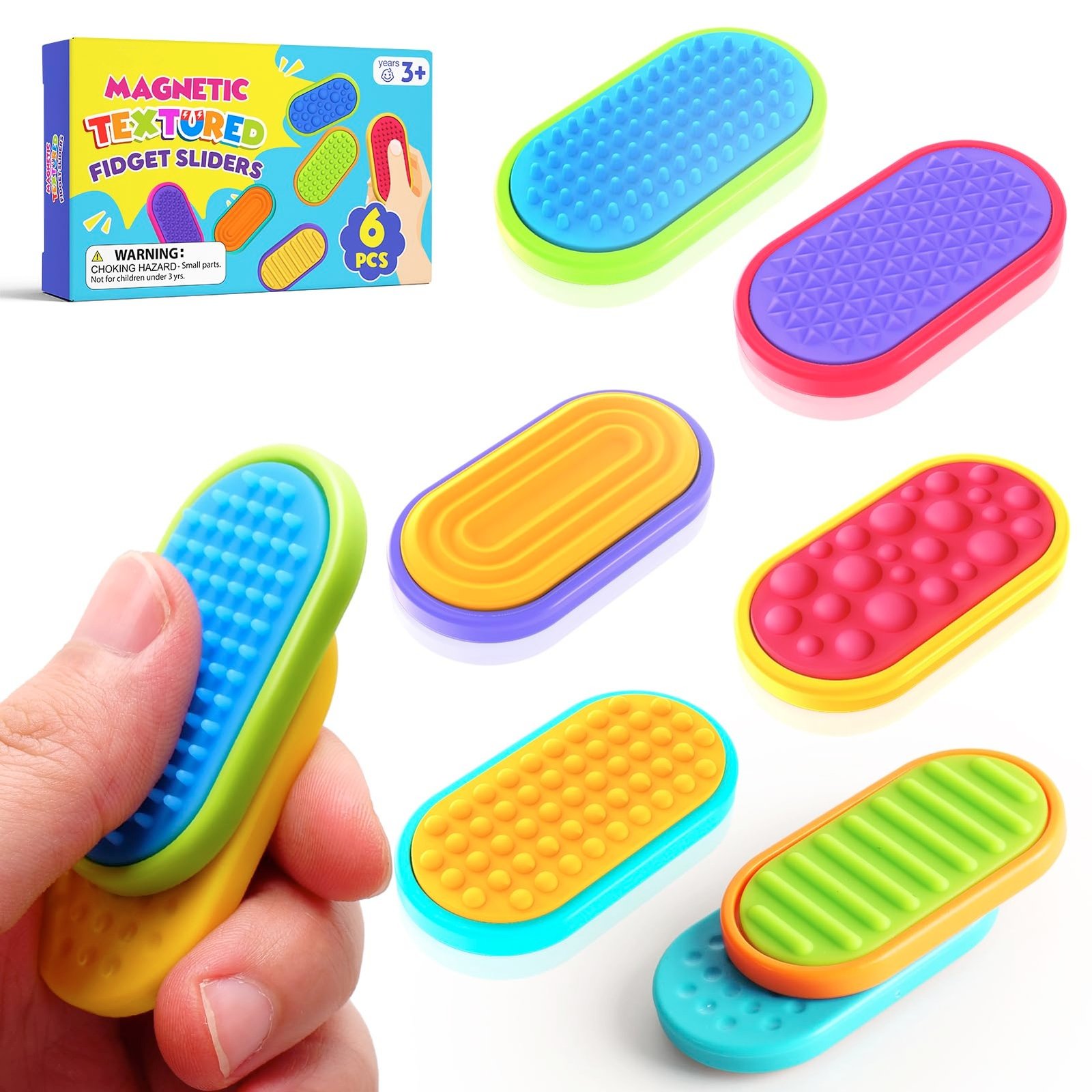 • 🧲Upgrade Silicone Fidget Sensory Experience – Say goodbye to cold, hard, monotonous fidget sliders! This fidget magnet sliders are made of soft touch, skin-friendly silicone, with 6 distinct tactile finger experiences, providing rich sensory instant calm for kids, teens, adults, children with autism, and ADHD. 6 vivid fidget sliders in assorted colors to delight kids and teens. Eye-catching yet calming, they make playtime more fun while offering real focus and relief—ideal for classrooms, therapy kits, or home