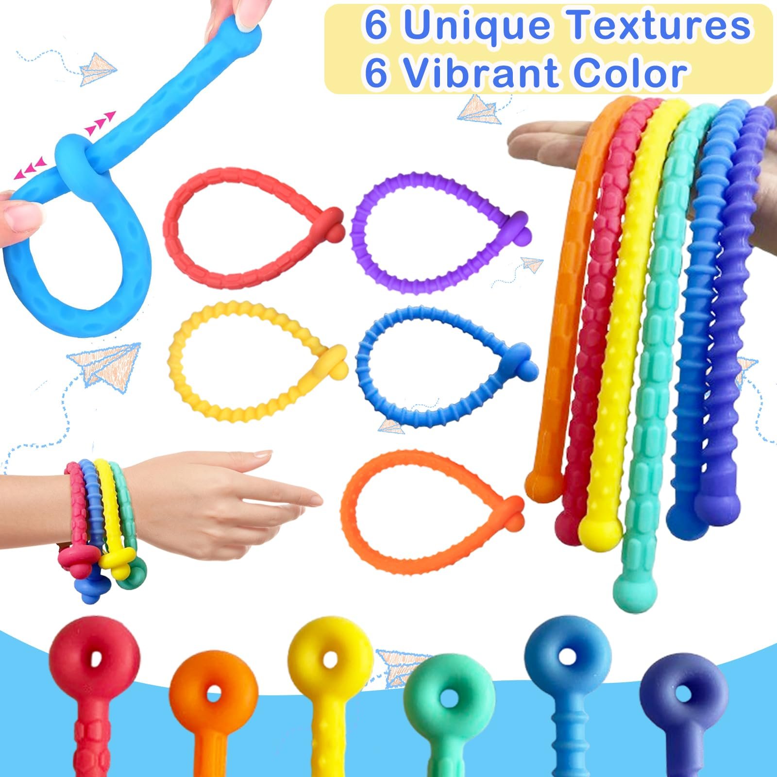 6 x unique sensory noodles fidget toys