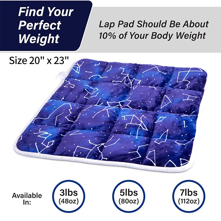 US CPSC CERTIFIED- The pad weighs 5lb and is designed to fit a lap: 21in x 1in x 19in. The lap pad is certified by the US Consumer Product Safety Commission to be safe for use by kids and adults. It comes with a product course to help you get started with fun and therapeutic activities.