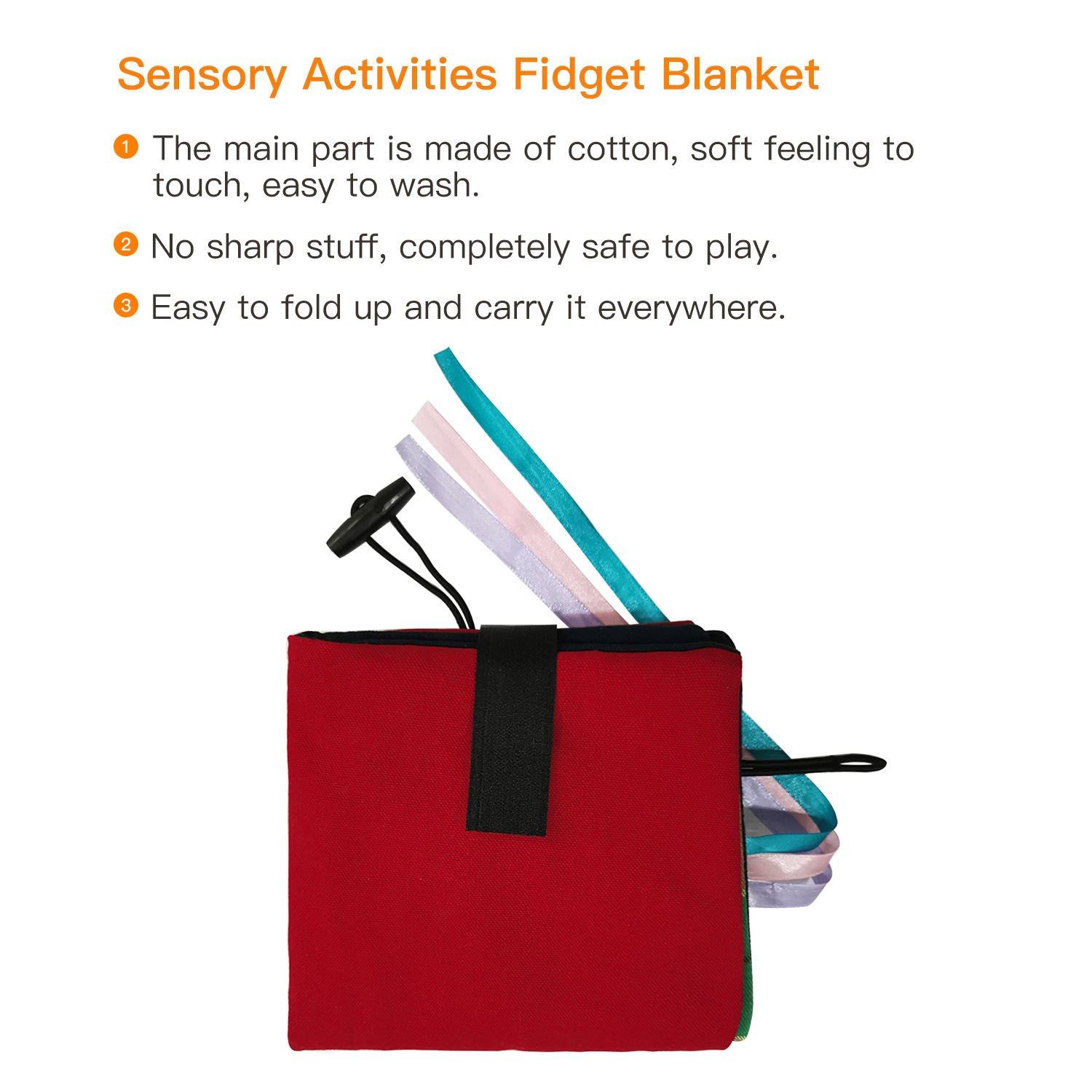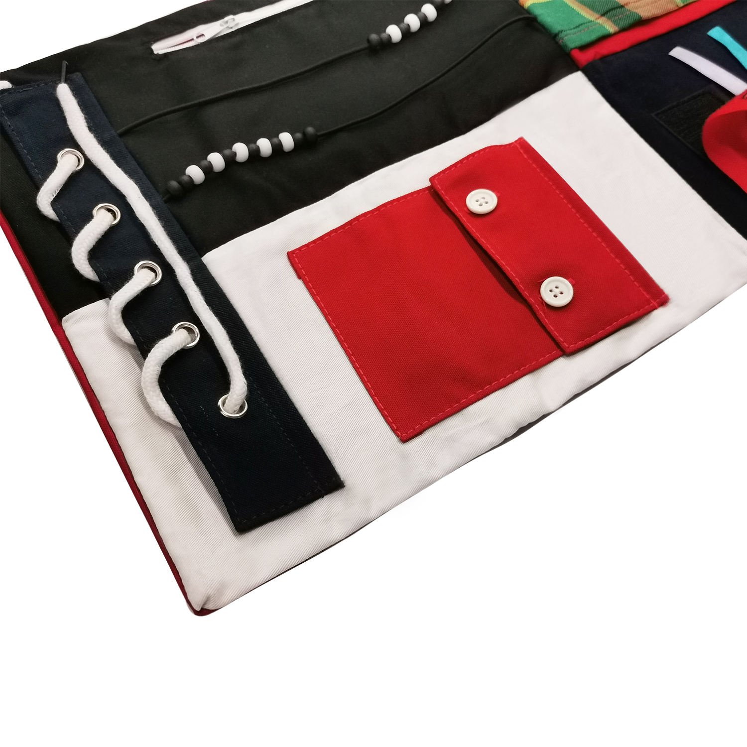 • ACCESSORY DESIGN :Added area for integrated detachable accessory function(sound elements can alleviate anxiety.)Enlarge the area of embroidery edging sequins,more suitable for those having weak tactile nerve, Increase the fun and exercise your fingers at the same time,Laces, zippers, tassels and other tactile accessories will keep hands busy