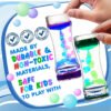 • LONG LASTING MULTIFUNCTIONAL TOYS FOR KIDS AND ADULTS:Made of durable and smooth transparent plastic, safe to use for children’s soft hands. The narrow parts are perfect for their small hands to grip.  These cool fidget sensory liquid motion timer bubblers are a great gift for boys and girls, men and women.