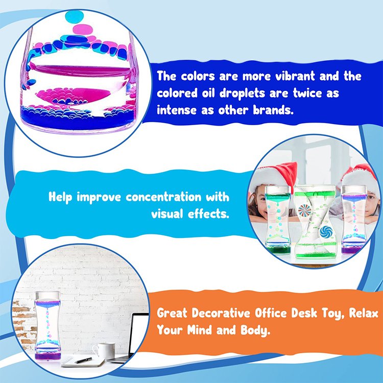 • GREAT BEST LIQUID MOTION TOYS: Its slow and rhythmic drops have a very soothing effect and actually help kids and adults with sensory issues. Makes perfect sensory toys for kids with special needs, autism, and ADHD. This liquid motion timer toy can also help fight anxiety, stress, and boredom.