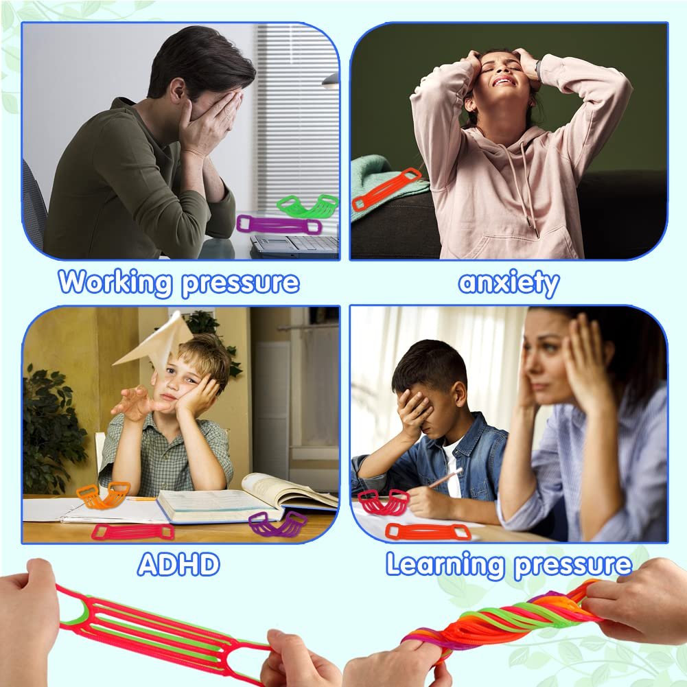 • Relieving Stress: The twenty – four piece stretchy strings set is the ultimate soothing sensory toy that can both relieve stress and provide entertainment. Stretch and twist these tension rope fidget toys are very popular in schools