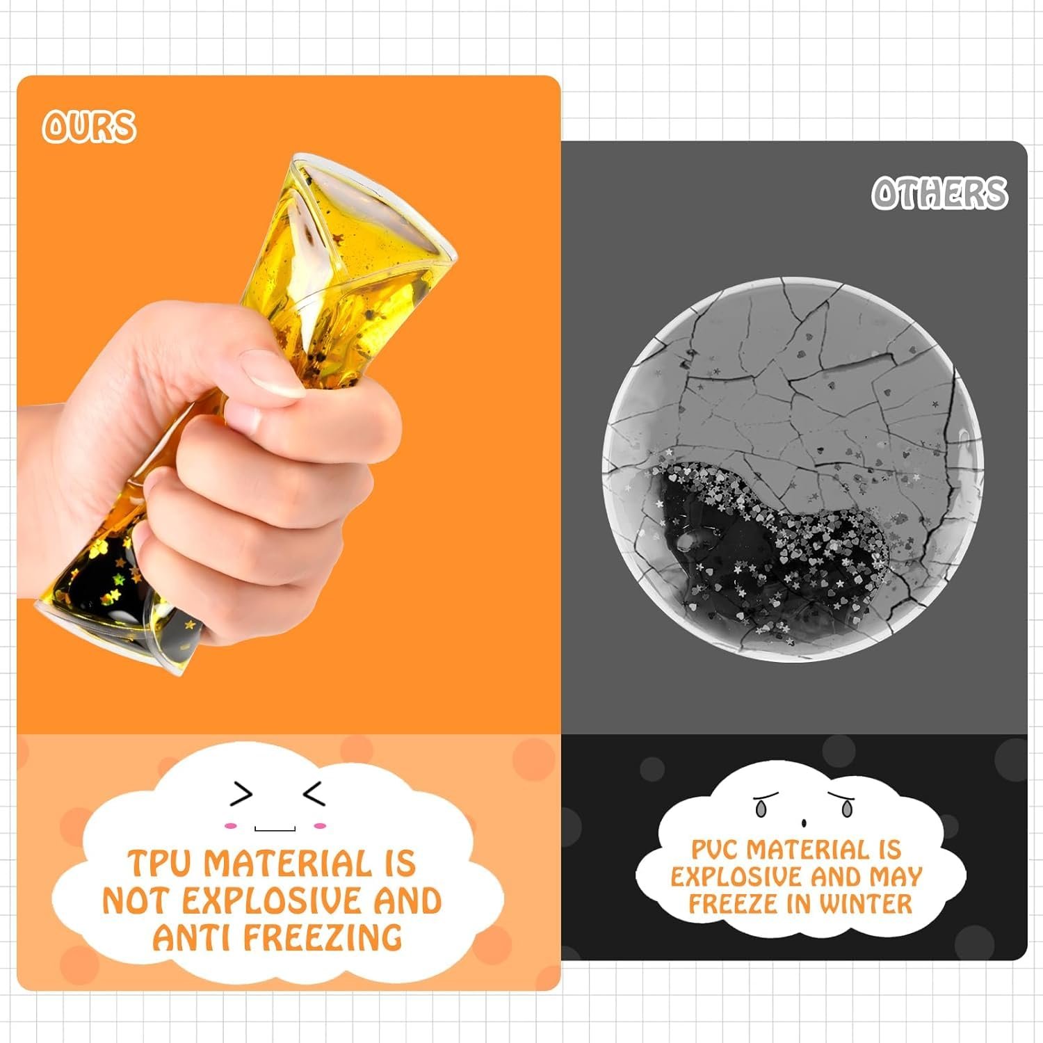 • Functional Design: Liquid sports gel toys not only relieve stress and anxiety, they also help improve focus and concentration and promote the development of sensory cognitive abilities. They are also a sensory tool that provides active play, learning and activities for young children.