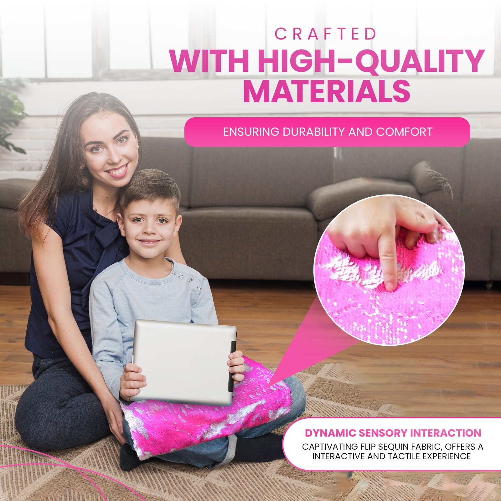 PREMIUM MINKY DOTTED FABRIC- Made with soft, textured minky fabric, the Lap Pad provides tactile sensory input while offering a comforting, weighted feel to help keep kids calm and grounded.