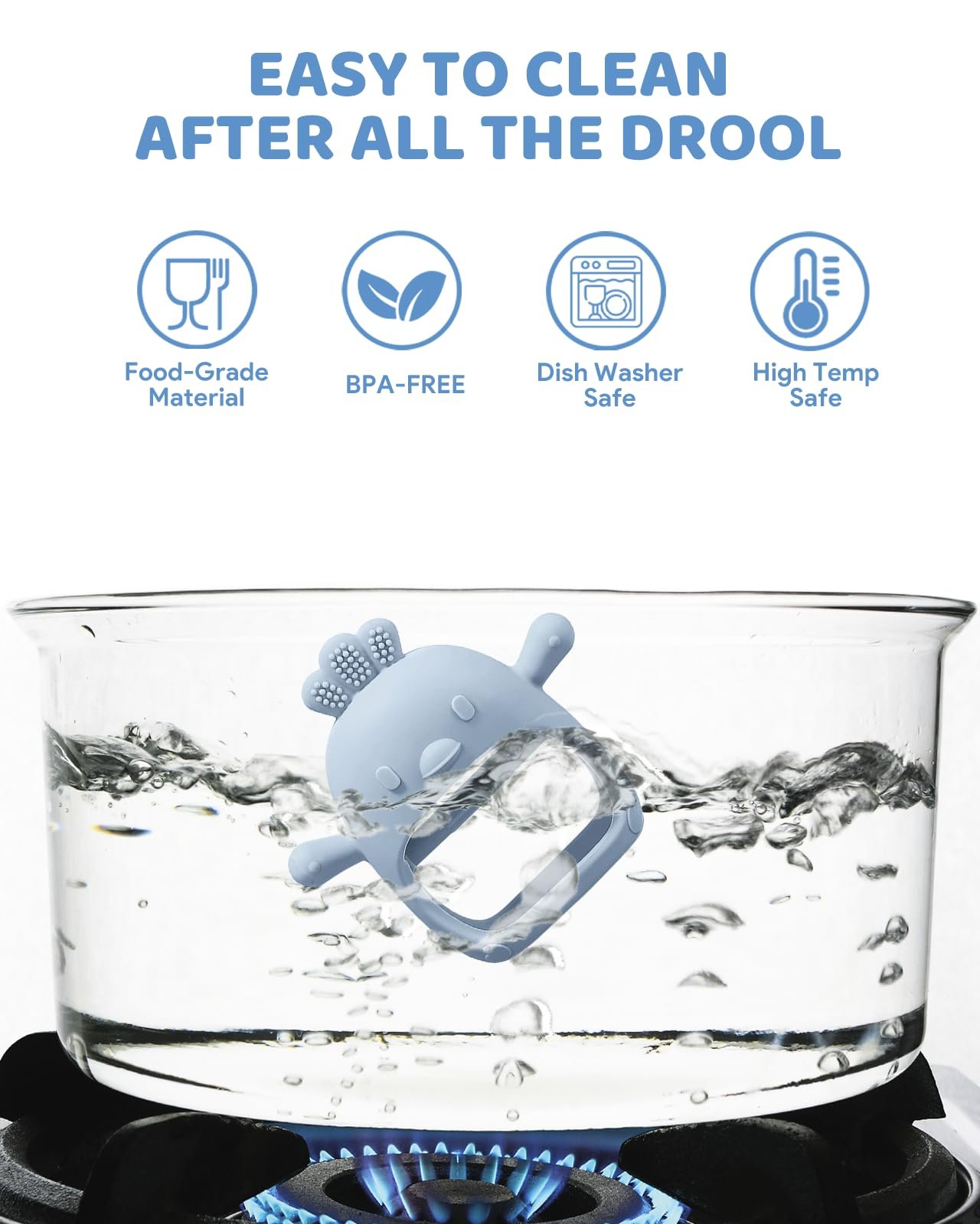 • 【Food Grade Soft Silicone】 Teethers are made of BPA free silicone with no small part to provide a strong, yet soft biting experience. The teething toy can be easily cleaned with a cloth, dishwasher and freezer safe. Our teethers exceed all government safety regulations and standards for parents’ peace of mind.