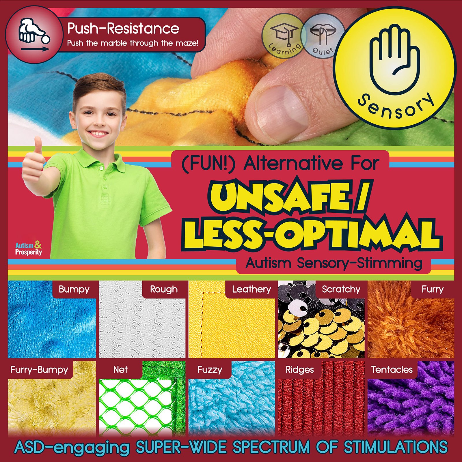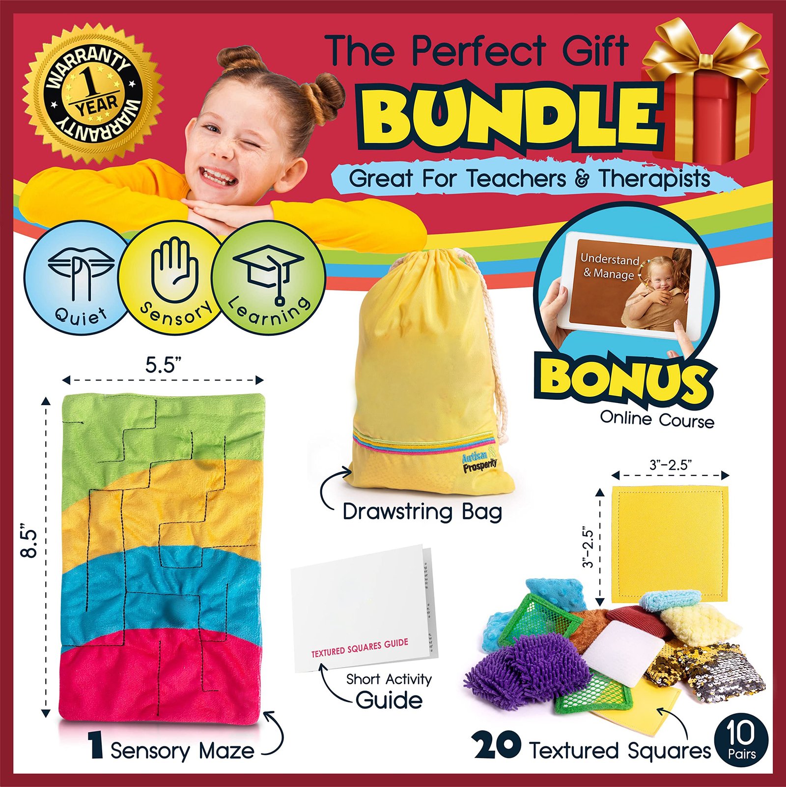 Safe Sensory Stimulation – Our autism sensory toys bundle provide a safe and fun alternative for sensory-seeking behaviors with various textured squares and a push-resistance maze.