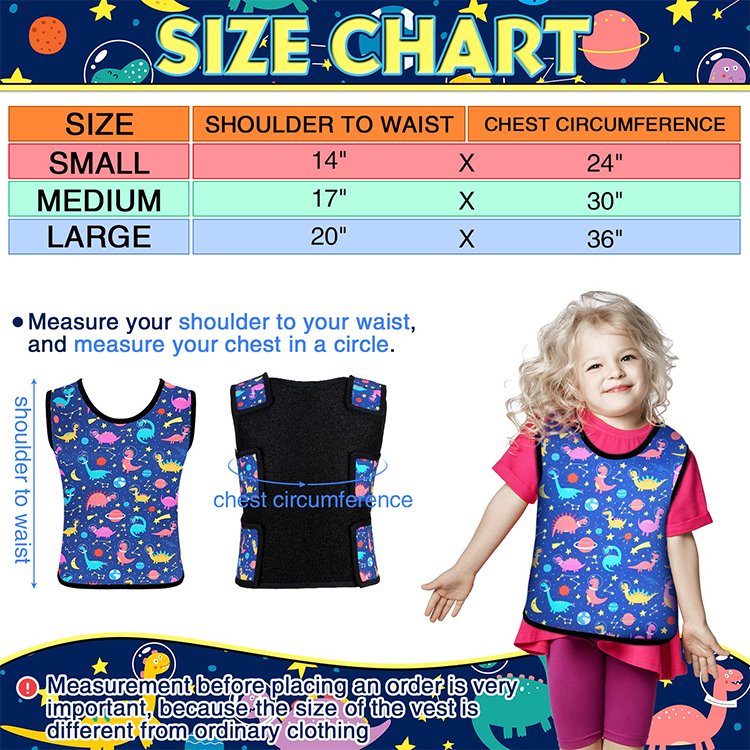 • Home, Travel, and Classroom Use – Our versatile sensory weighted vest can be worn wherever and whenever your child needs to calm down or feel more in control, including on long car rides, in class with friends or teachers, or out running errands.