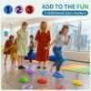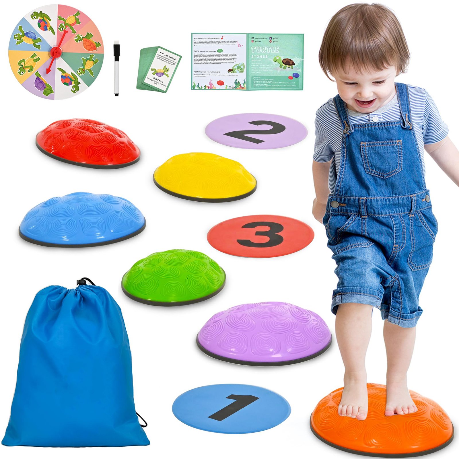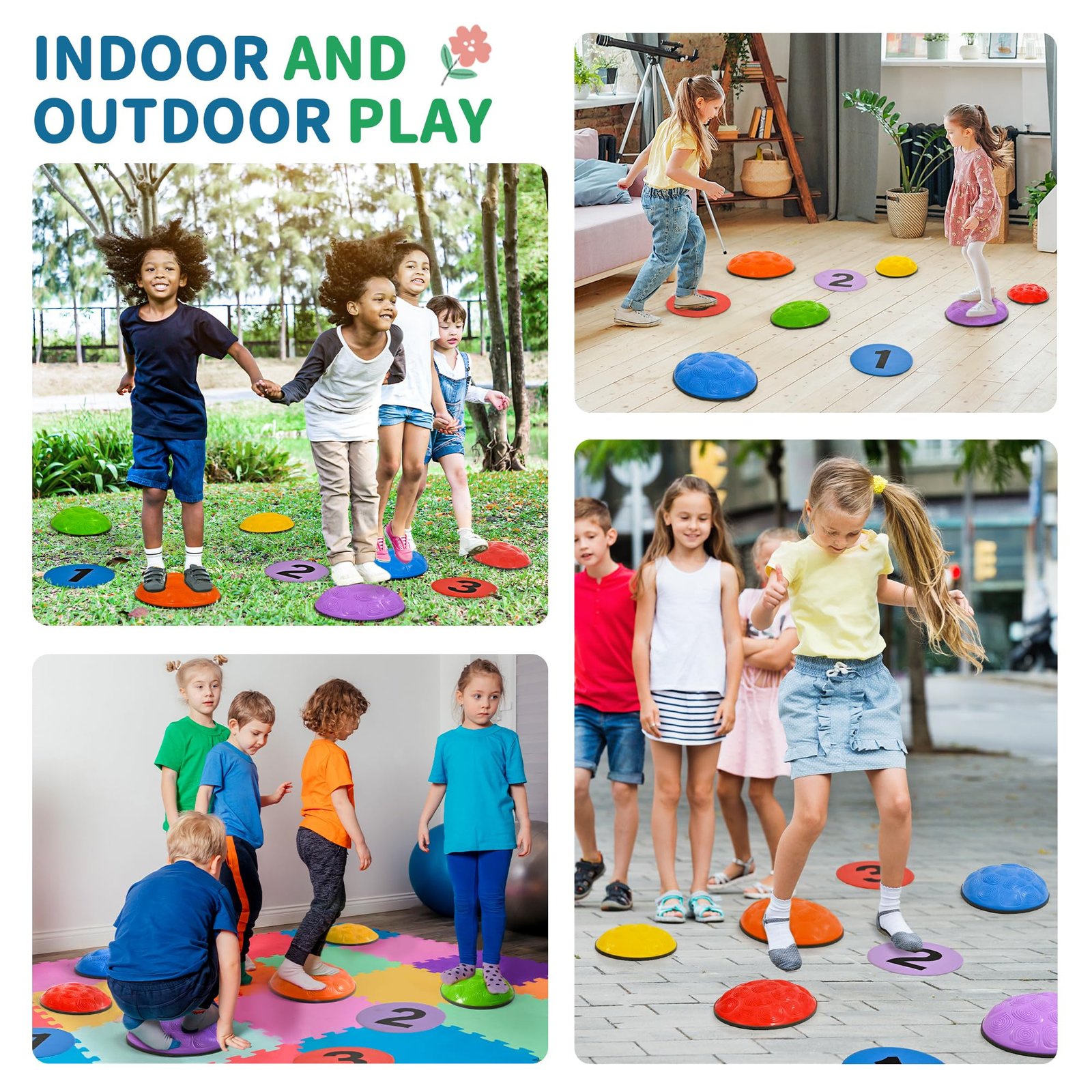 • RUGGED, DURABLE & NON-SLIP DESIGN – We use non-toxic, odourless and healthy PP material, which is safe for kids to use. With a maximum weight capacity of 230lbs, it is suitable for kids over three years old and adults to play. Each balancing stone has a different texture on top to prevent kids from slipping. The bottom is wrapped with non-slip rubber, which can be used both indoor and outdoor. Can be played at home, park, floor, carpet, grass, beach.